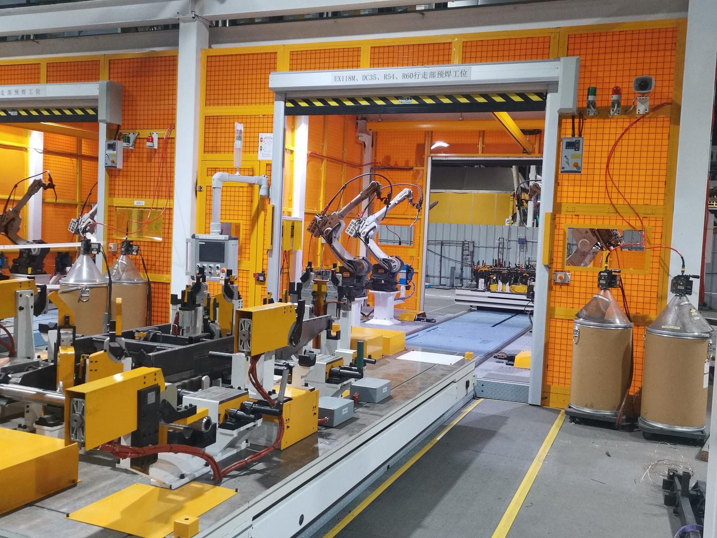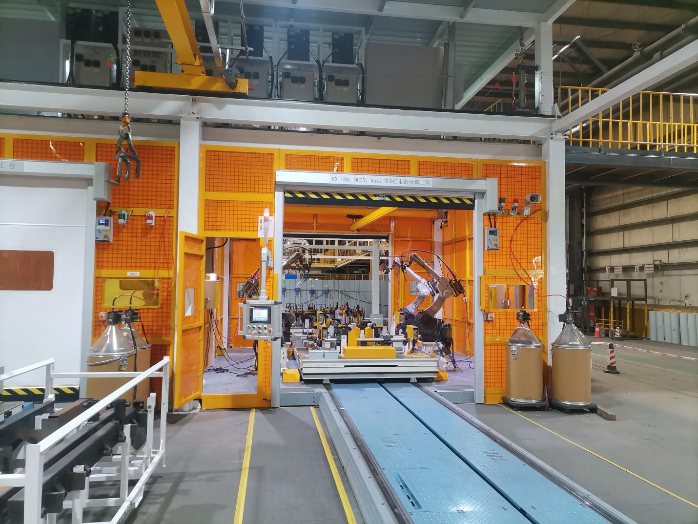 本项目主要用于收割机底架焊接项目,人工吊装上料,工装自动压紧,滑台输送方式,机器人自动焊接