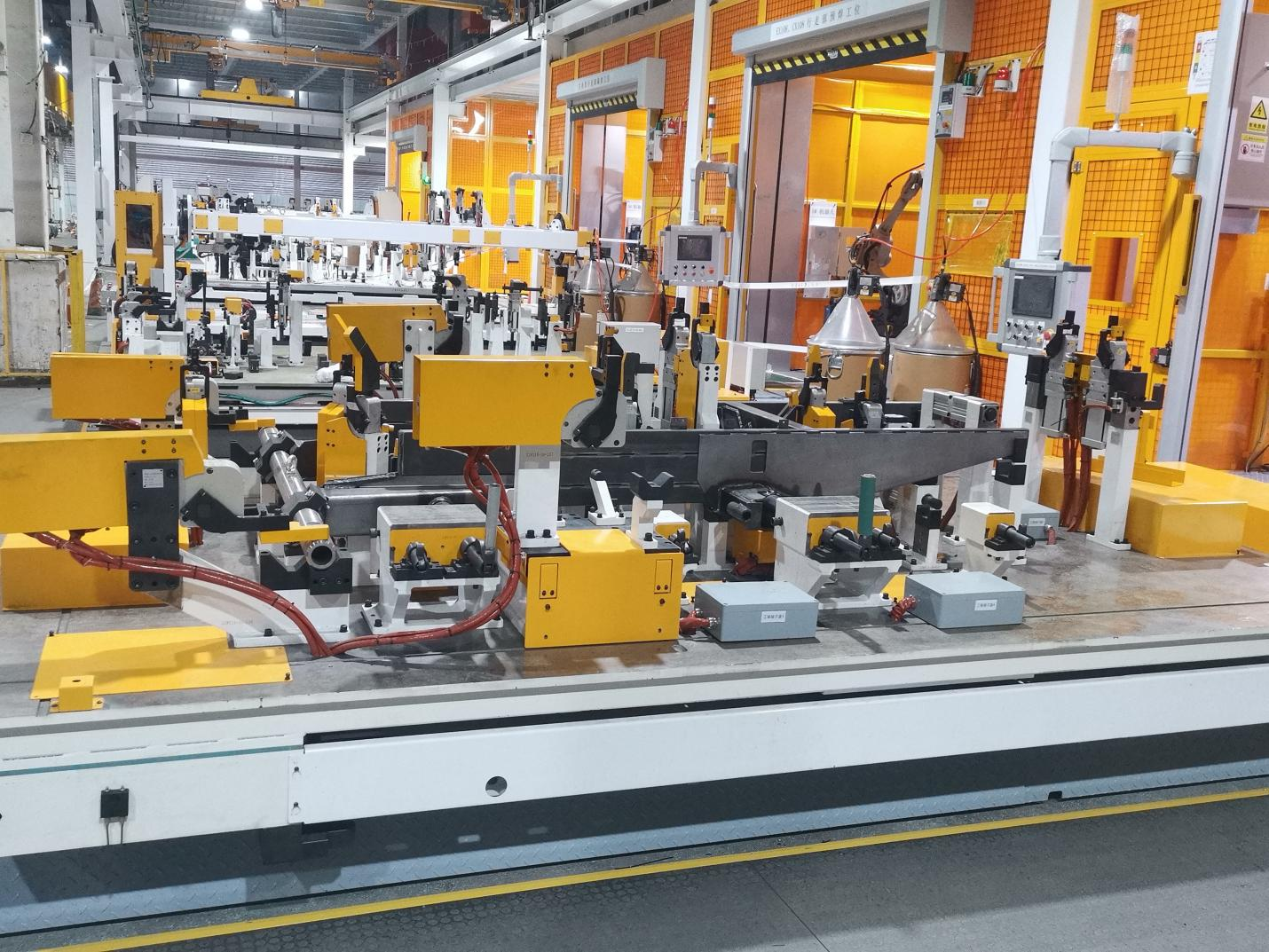 ①将主机架分为四个组件分别焊接后再进行拼接,治具结构简单,可兼用机型多,自动化率提高至85%-95%