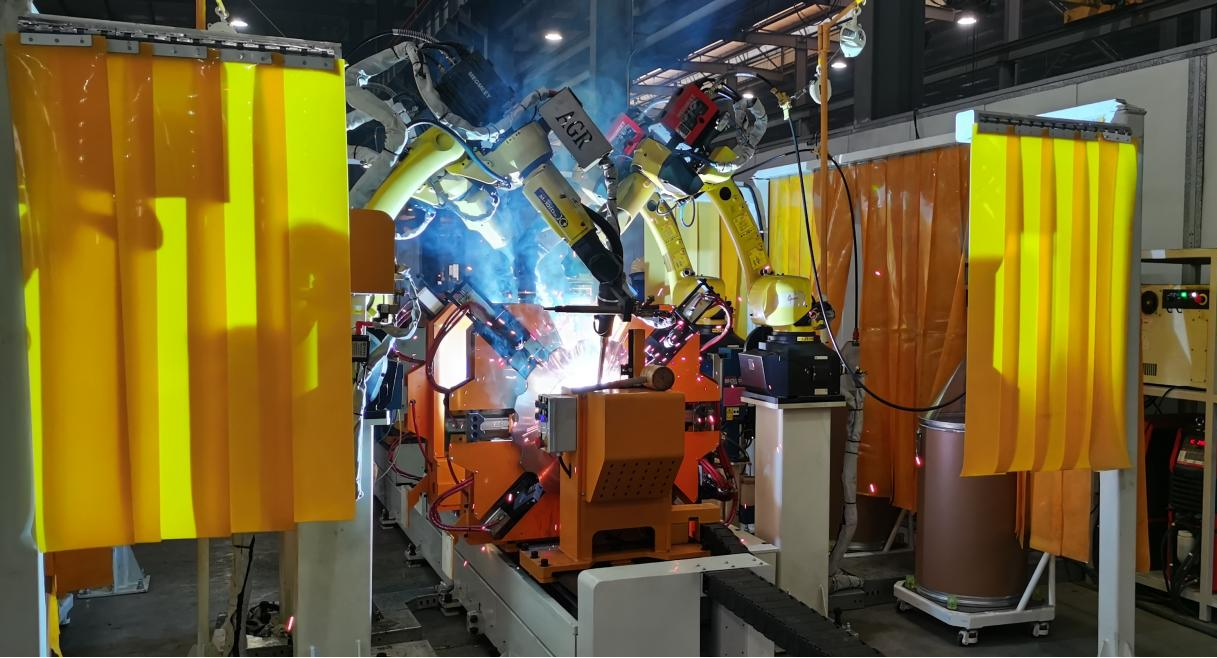 (3)焊接位配置四台机器人,其中两台负责烤火预热,全部四台兼责点焊与焊接工作。