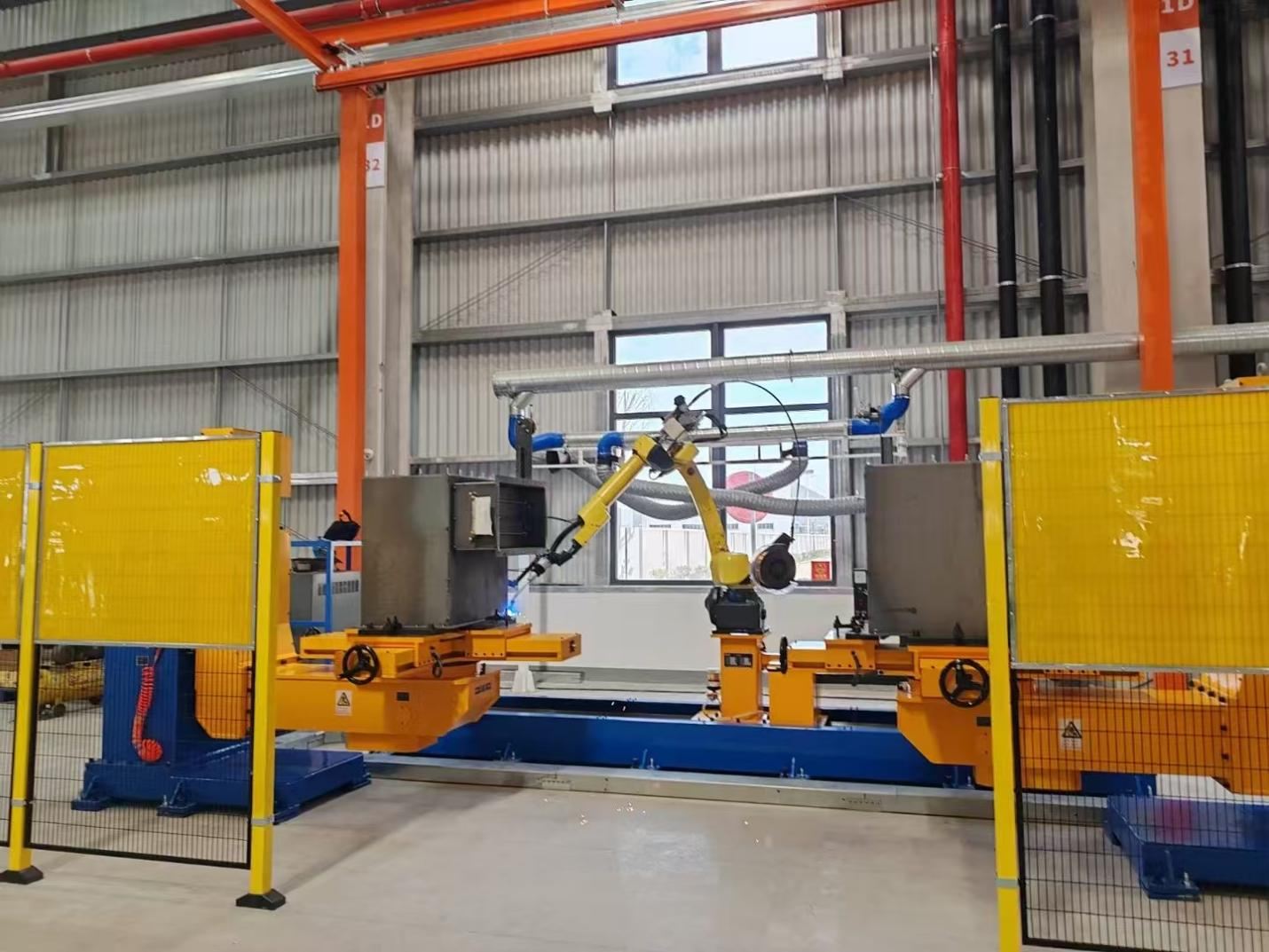 ①智能焊接:集成电弧跟踪与起始点寻位功能,搭配激光跟踪系统,精准适应箱体复杂焊缝